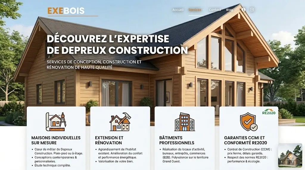 Pour initier un projet, plusieurs canaux sont disponibles : formulaire de contact en ligne sur le site, appel direct au numéro de l’agence de Rezé, ou prise de rendez-vous via les réseaux sociaux. Depreux Construction recommande un premier échange téléphonique pour qualifier le projet avant toute rencontre physique.